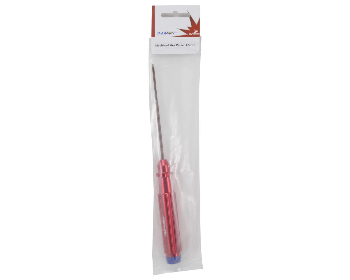 This is a Dynamite 1.5mm Machined Metric Hex Driver. Dynamite tools feature stylish red anodized aluminum handles, with replaceable steel tips. To make wrenching easier on your hands, the handles include rotating plastic end caps to swivel in your palm. Plus, the end caps have the tool size printed on the end, and are color coded for easy identification. Package includes 1.5mm size hex wrench.