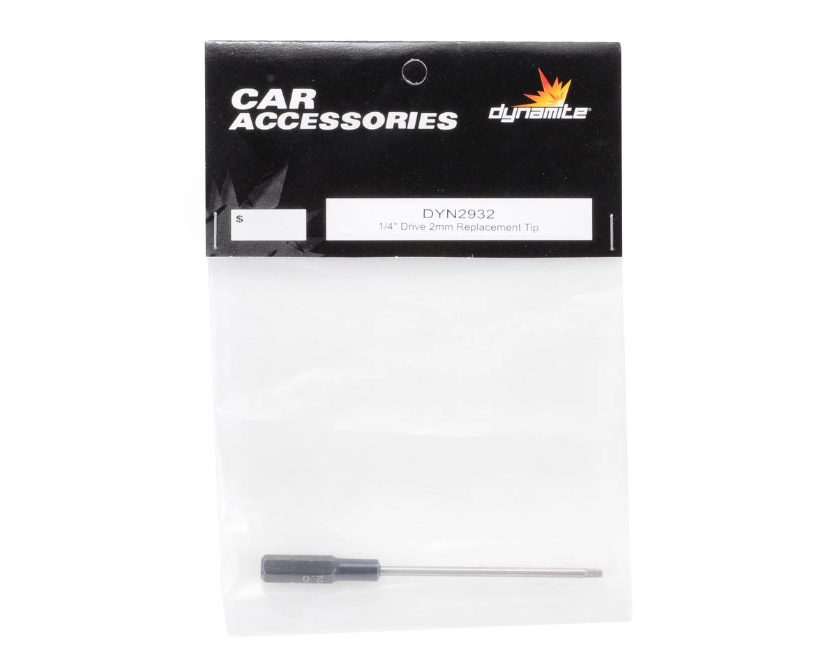 This is a Dynamite 2mm Hex Tip. This 1/4″ drive tip is a replacement for the DYN2920 wrench set, but can also be used by itself with a 1/4″ drive drill.