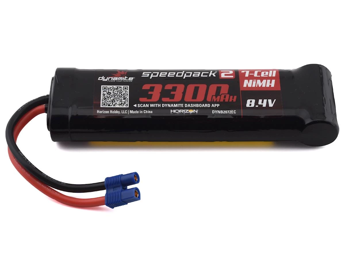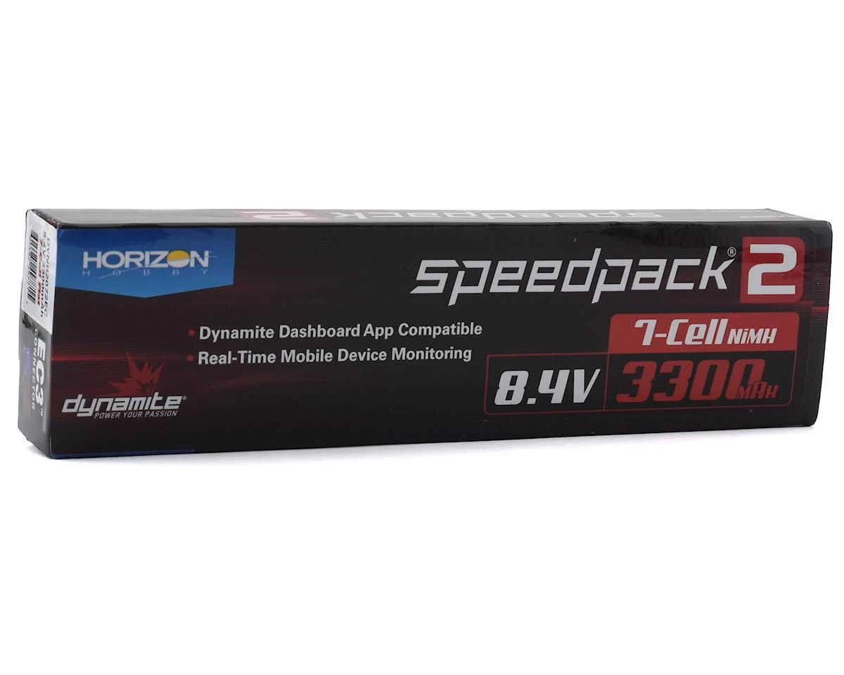 This is a Dynamite 7 Cell 8.4V NiMH “SpeedPack2” Flat Battery Pack with EC3 Connector. Dynamite Speedpack 2 sport packs are an extremely affordable choice for everyone from RC hobbyists to sport-level racers. They feature capacity ratings ranging from 1800mAh to 5100mAh, making it easier than ever to choose the right Ni-MH battery for your vehicle. Additionally, Speedpack 2 batteries are fully compatible with the Dynamite Dashboard app. The Dynamite Dashboard app seamlessly integrates the batteries with the Dynamite Passport Series of chargers and brings real-time monitoring to your mobile device.