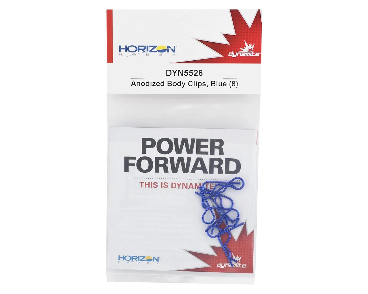 This is a pack of eight Dynamite Anodized Body Clips in Blue color.