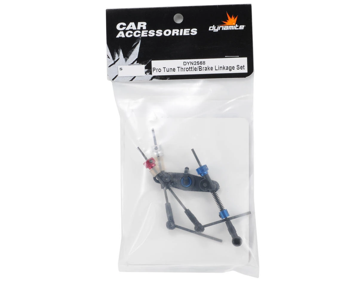 This is the Dynamite RC Pro Tune Throttle and Brake Linkage Set. Independent precision adjustment of the front and rear brakes and throttle deadband on 1/8-scale trucks and buggies is easy with Dynamite’s ProTune Linkage Set.