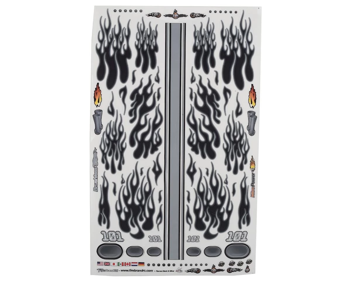 Firebrand Flames Galaxy Black Decal Sheet. Get ready to be noticed when you mix and match these unique, vinyl decals. With such a wide variety of decals per sheet, they can be used over and over for many different vehicles and projects. These multi-fit decal sheets are designed to fit any 1:10 scale (or similar) remote-controlled car, truck, plane, helicopter or boat body. Whether you like to drive, fly or float – these cutting-edge decals are perfect for your next RC project! These LARGE decal sheets are created with the latest in digital printing techniques. They are produced on an 8-color press using the highest-quality solvent inks, metallic inks and a UV coating. All decals are die-cut for easy application. A “must have” for the true RC enthusiast – this decal sheet is designed to give your body a “next-level” look.
