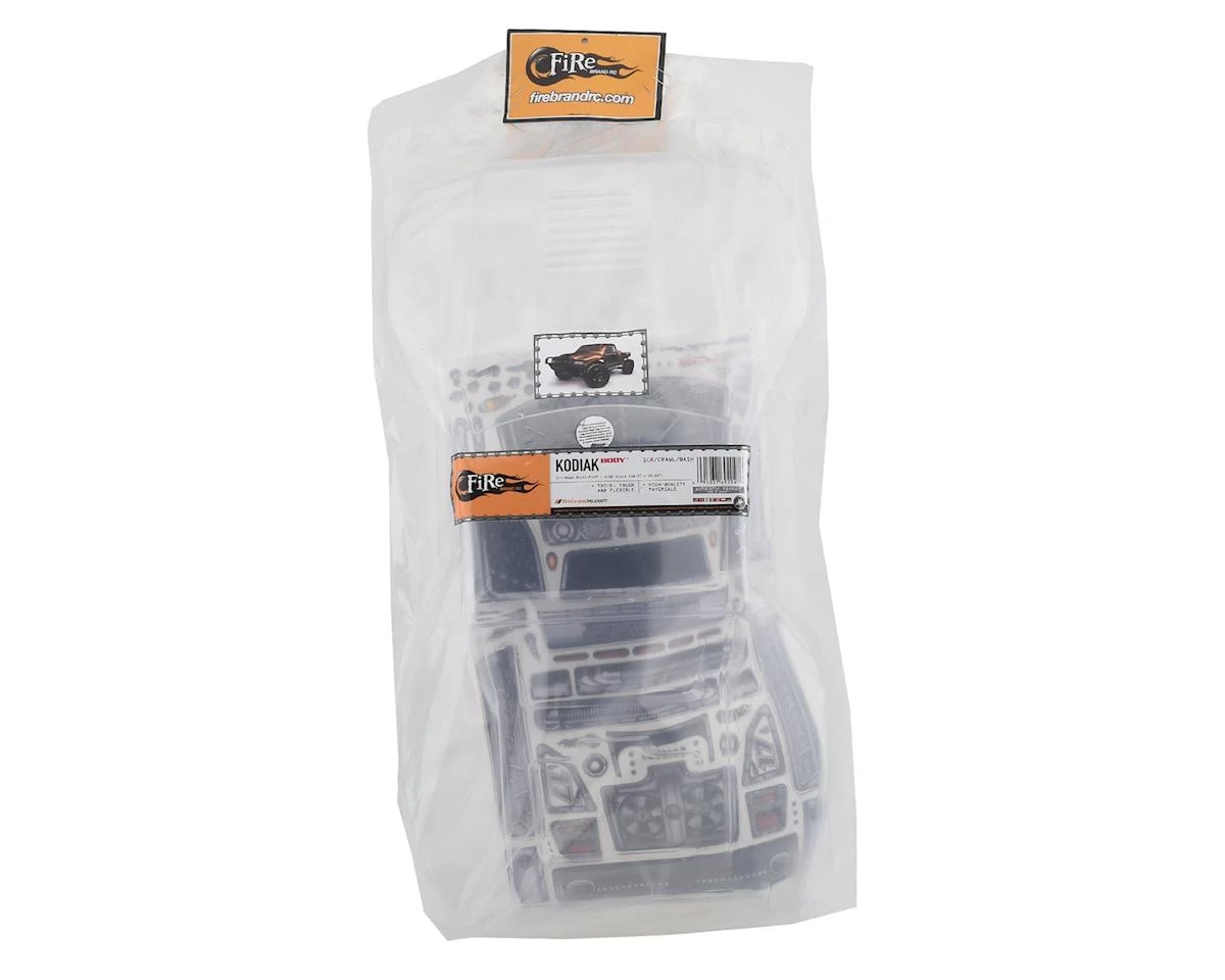 The Firebrand Kodiak Short Course Body is a sleek, short-course racer that owns the track. Bullying your way to the front of the pack is easy with this sturdy, no-nonsense bear of a body. This body has a protective over-spray film and includes a large decal sheet and window masks. Bodies are clear and come ready to paint. This body fits most 1:10 scale, short-course race trucks. Nitro or electric. No holes drilled. (18.5″ x 10.25″).